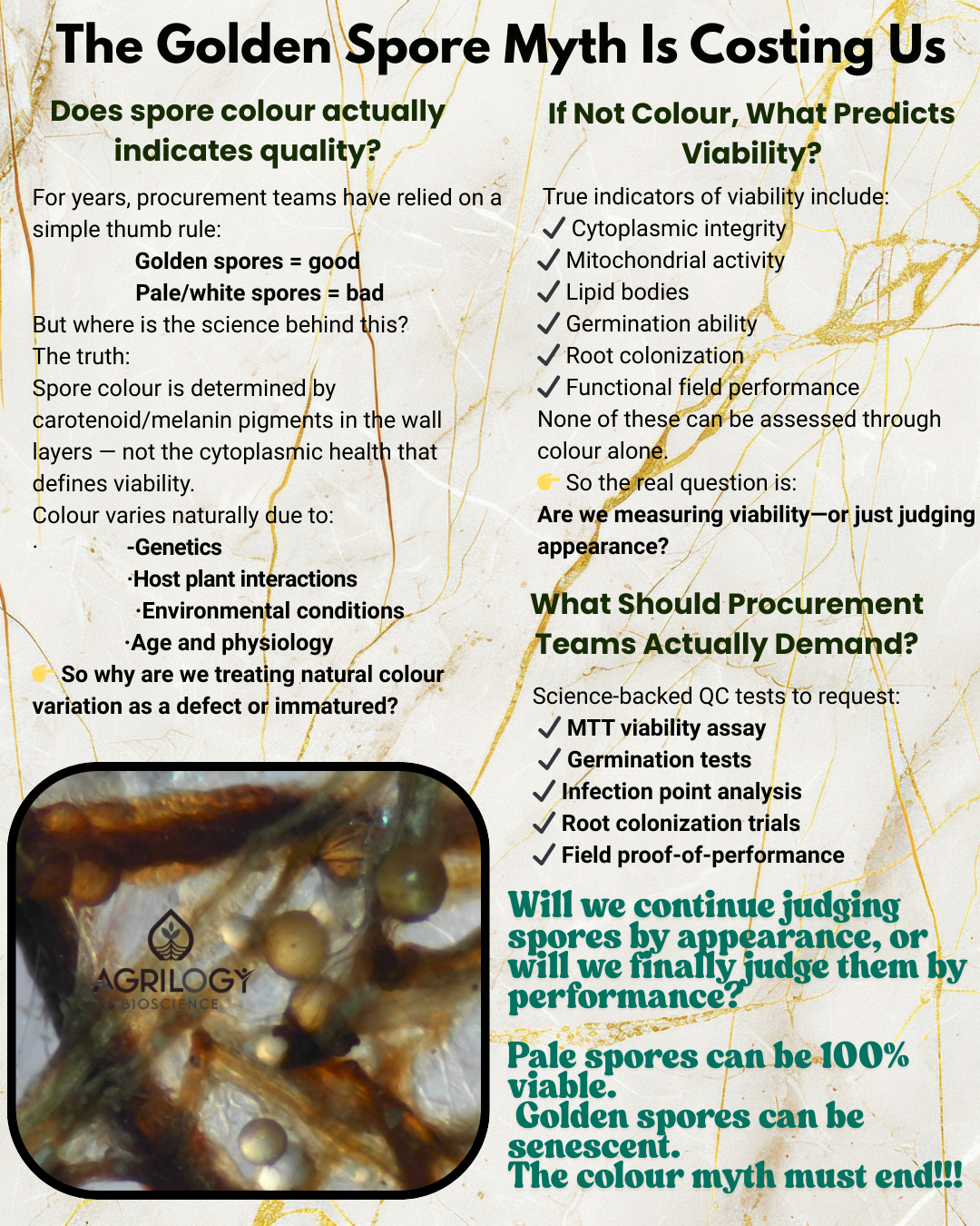 Crops don’t grow from the colour of the spore—they grow from the life and activity within it.
